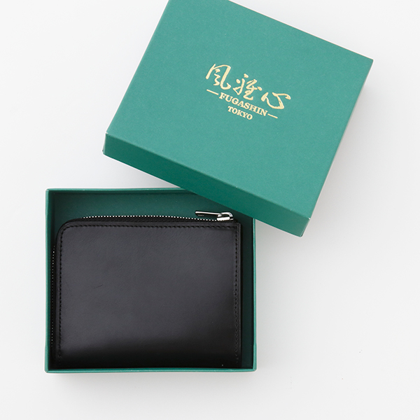 「風雅心」の財布、革小物はカットエッジ製法でお造りしました。カットエッジ製法とは、デザインに合わせ型抜きされた二枚の革を接着し縫い合わせる製法で、縫製断面を丹念に磨き染料着色された、コバ(革断面)に特徴があります。「風雅心」の仕上げ職人の熟練の技をそれぞれの製品でお確かめください。使い込み、年を重ねるごとに、趣と風合いを深める厳選したヨーロッパ産のユーロカーフの味わいと合わせ、お楽しみください。