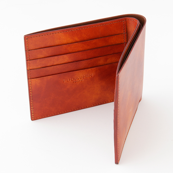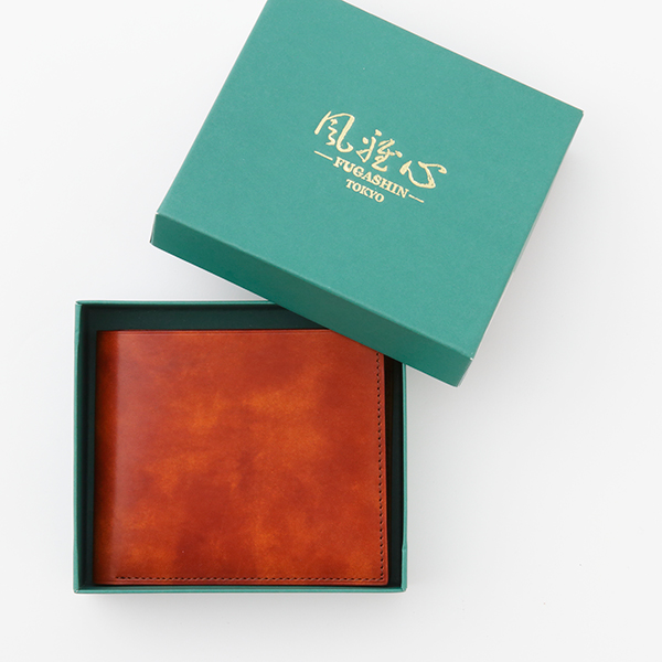「風雅心」の財布、革小物はカットエッジ製法でお造りしました。カットエッジ製法とは、デザインに合わせ型抜きされた二枚の革を接着し縫い合わせる製法で、縫製断面を丹念に磨き染料着色された、コバ(革断面)に特徴があります。「風雅心」の仕上げ職人の熟練の技をそれぞれの製品でお確かめください。使い込み、年を重ねるごとに、趣と風合いを深める厳選したヨーロッパ産のユーロカーフの味わいと合わせ、お楽しみください。