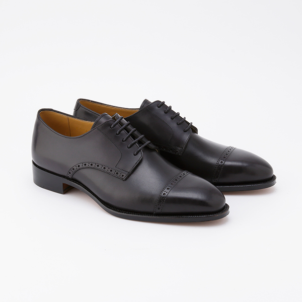 甲部の一文字と腰革のシームラインに穴飾りをあしらった外羽根スタイルのストレートチップ。カジュアル感のあるフォルムだから、幅広いコーディネートがお楽しみいただけます。